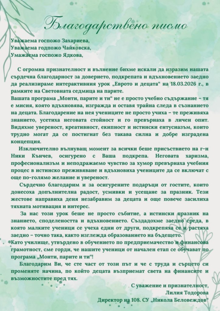 Финансовата грамотност не е само семеен въпрос, а се превръща в национален приоритет със стратегическо значение. Децата и учениците са една от най-важните целеви групи в финансовото ограмотяване на обществото ни.