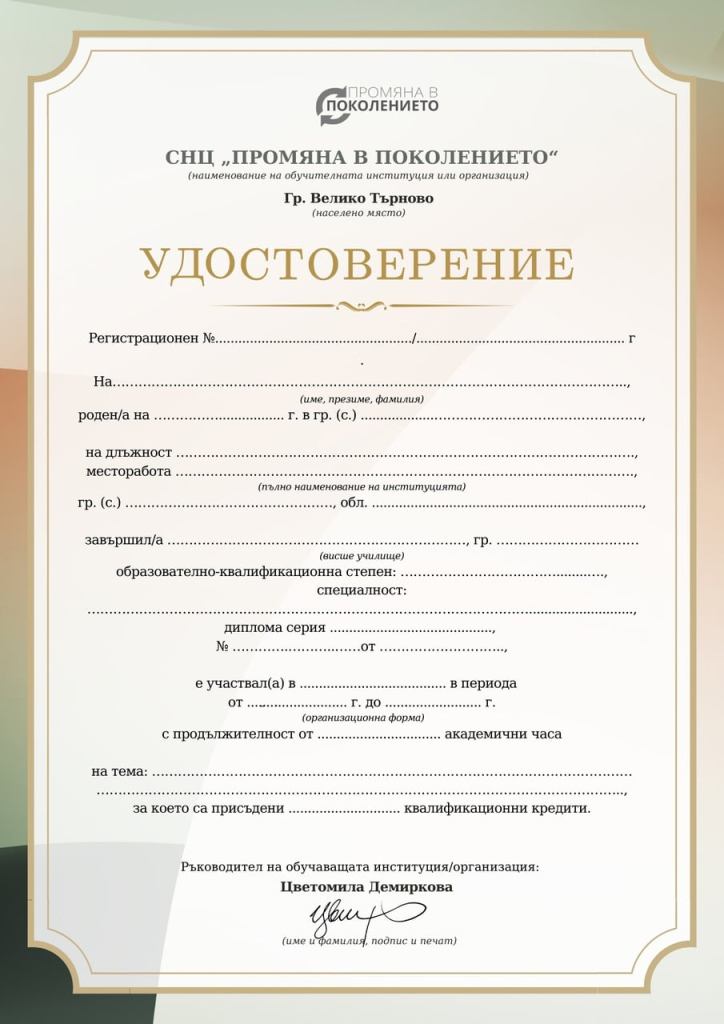 Удостоверение с квалификационен кредит от МОН